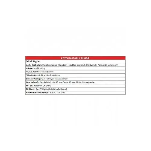 - Motorlu sistemi ve uzaktan kablosuz haberleşme teknolojisi sayesinde silindir, mobil uygulama, uzaktan kumanda ve parmak izi okuyucu ile çalıştırılabiliyor.